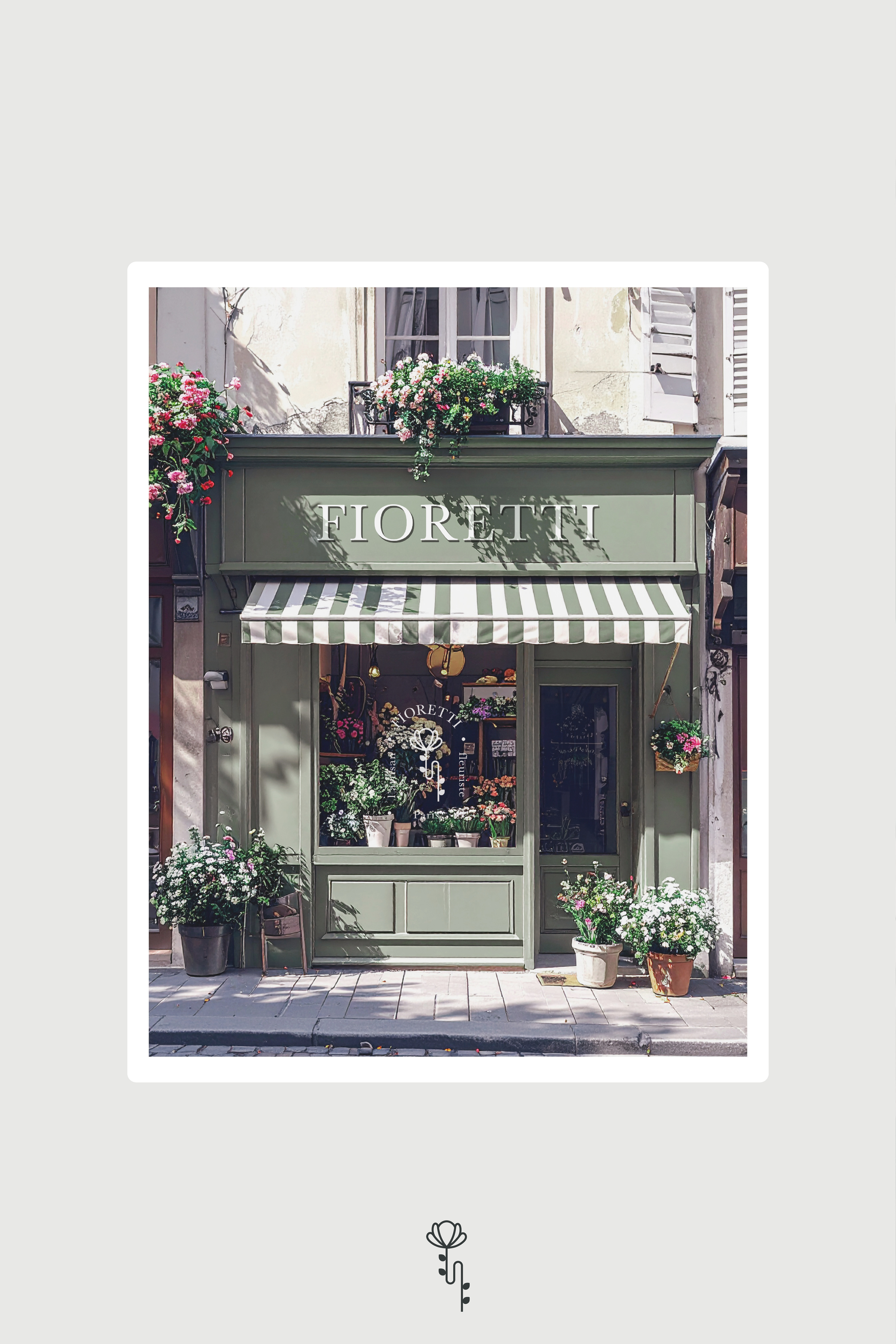 Fioretti Paris est une maison florale qui s’ancre dans l’élégance du style parisien. L’identité visuelle que j’ai imaginée s’inspire des kiosques traditionnels, revisités dans une approche contemporaine, à la fois graphique et raffinée.