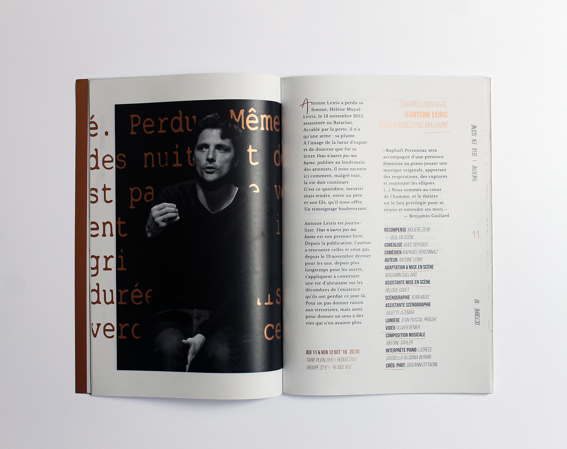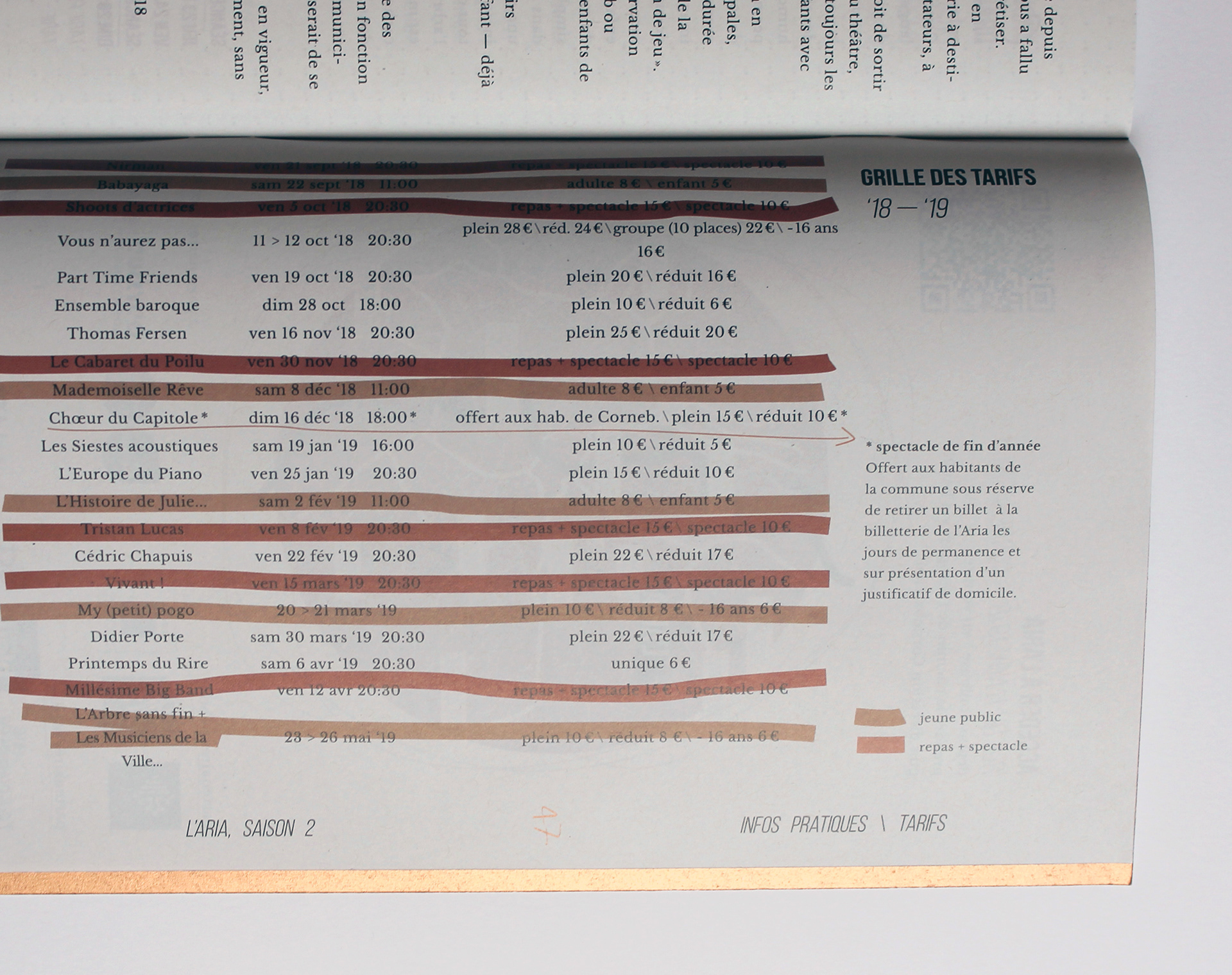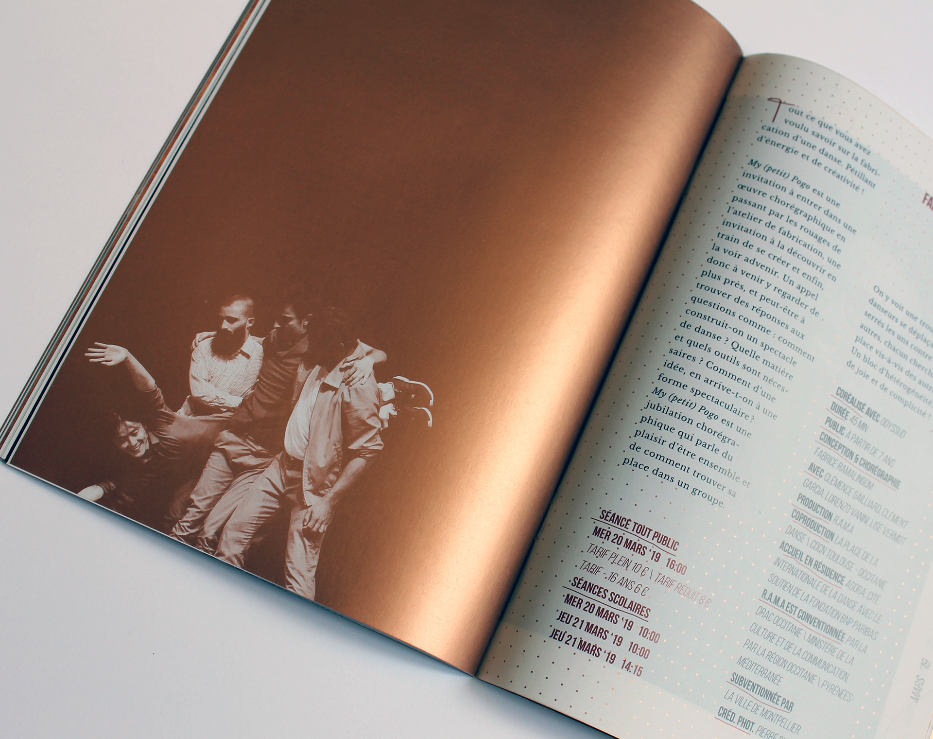 La brochure de 48 pages, véritable objet éditorial de valeur, allie finesse de réalisation et Pantone cuivré, pour être conservée et parcourue à loisir, comme un carnet précieux.